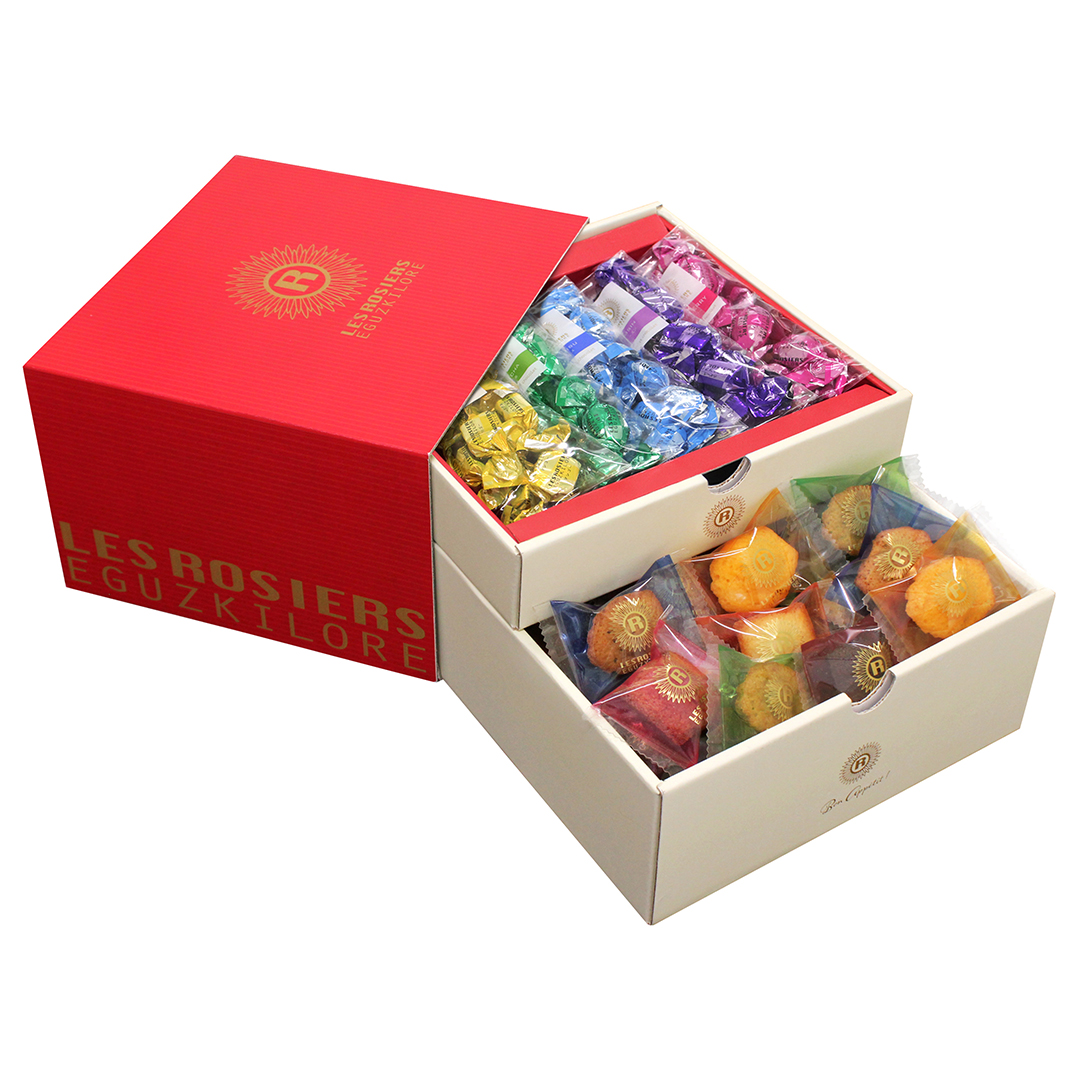 | 内容量 | フィナンシェ(プレーン・ショコラ・フランボワーズ)×各7、マドレーヌ(ピスタチオ・アールグレイ・マンゴー)×各7(計42)、プチショコラ(ストロベリー・マンゴー・レーズン・ティラミス・抹茶)×各9(計45) |