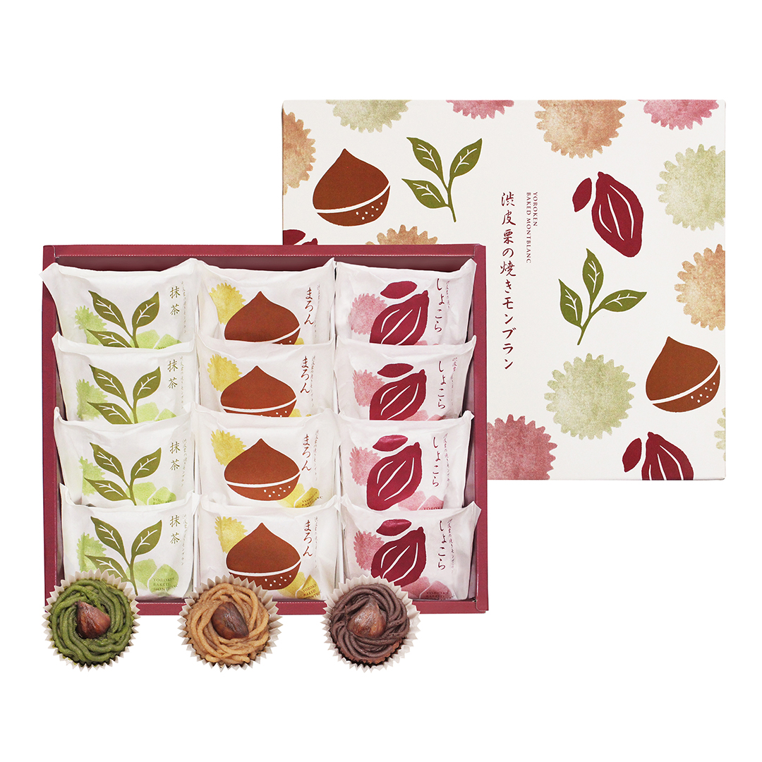 | 内容量 | 栗・抹茶・チョコ×各4(計12) |