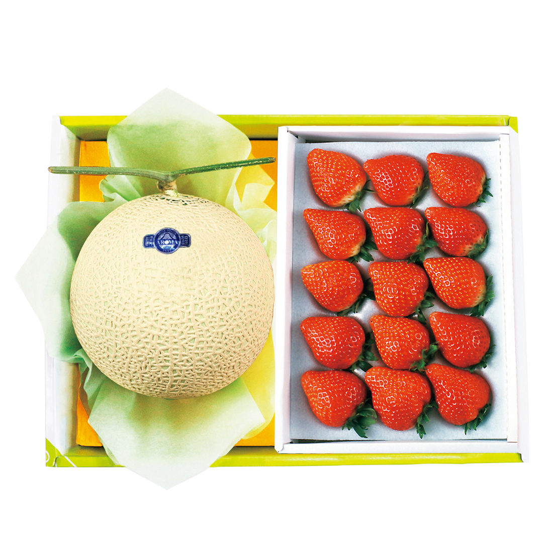 甘みに富んでいて、上品な味わいがあり、香り豊かな静岡県産アローマメロンと、甘さと酸味のバランスがよく、濃厚な味わいが特長の栃木県産いちごの贅沢な詰合せです。
