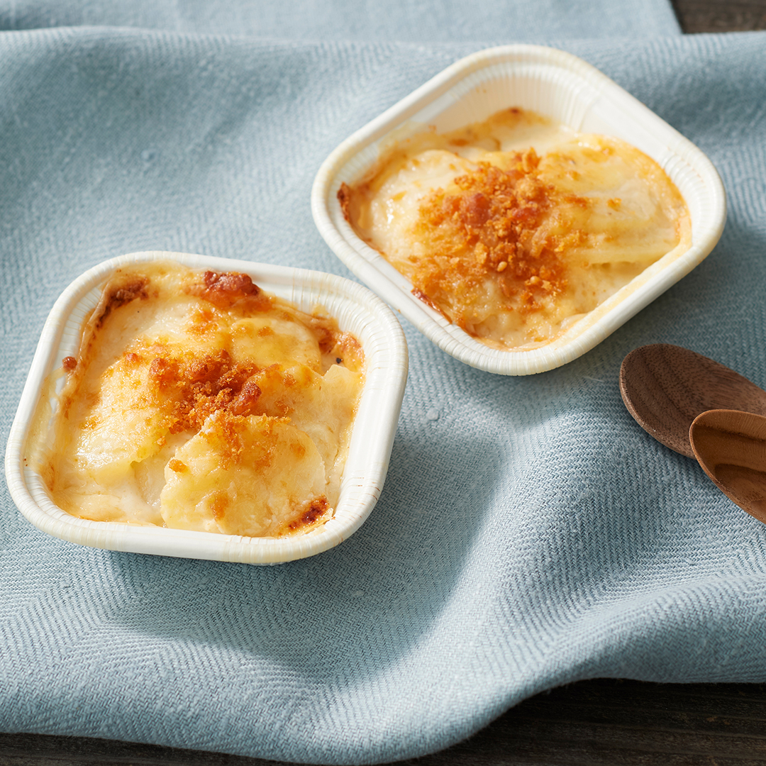 あわせるデリは、7種の野菜の旨みを濃縮した、野菜を美味しく味わうラタトゥイユ、チーズのコクが溶け込んだプチグラタンの2種。