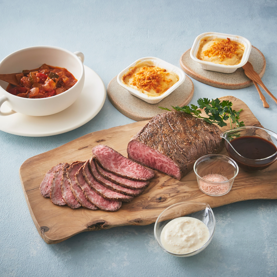 プライムビーフのローストビーフの美味しさを引き立てる、相性の良いデリ2品を組み合わせ