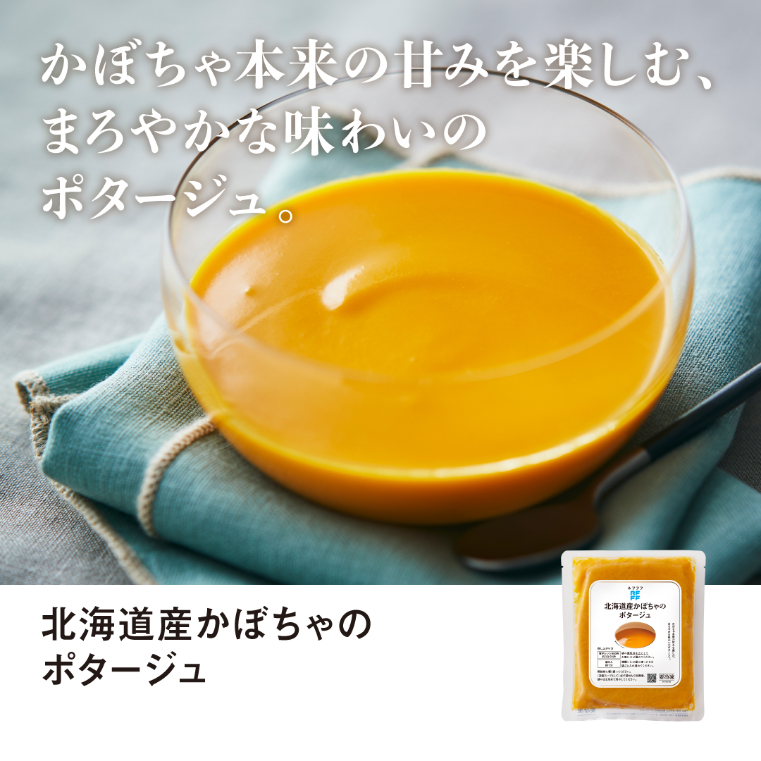 ブイヨン(玉ねぎ、人参、セロリ)(国内製造)、じゃがいも(国産)、牛乳、葱、玉ねぎ(国産)、クリーム、バター、チキンブイヨン、植物油脂、食塩、香辛料/増粘剤(加工デンプン)、(一部に乳成分・鶏肉を含む)■かぼちゃのポタージュ