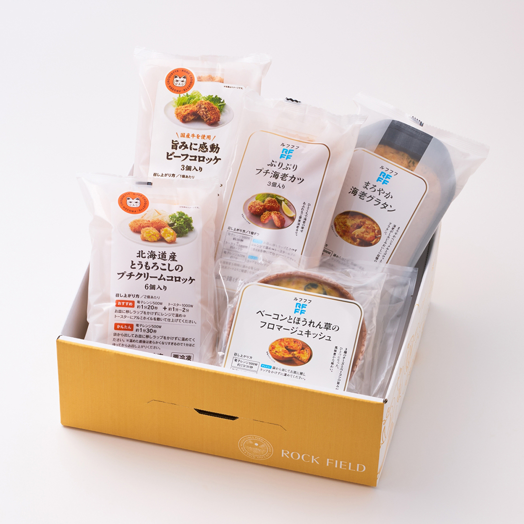 ロック・フィールドの冷凍ブランド「神戸コロッケ」&「RFFF」の人気商品の詰め合わせ。