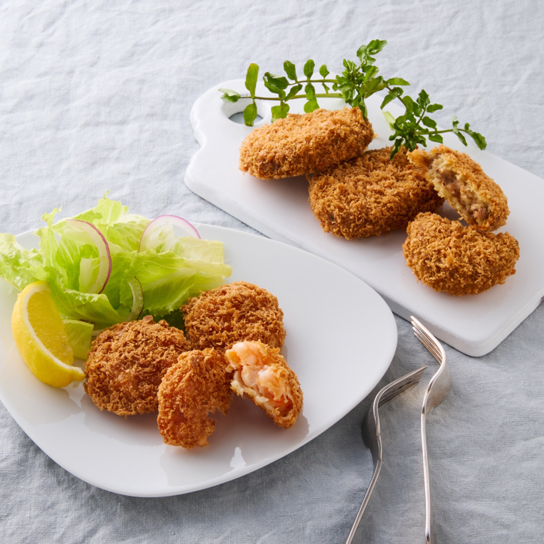 ぷりぷりの海老の美味しさが詰まったカツと、牛肉の旨みがあふれるビーフコロッケは、食卓の一皿に活躍間違いなしの2品です。