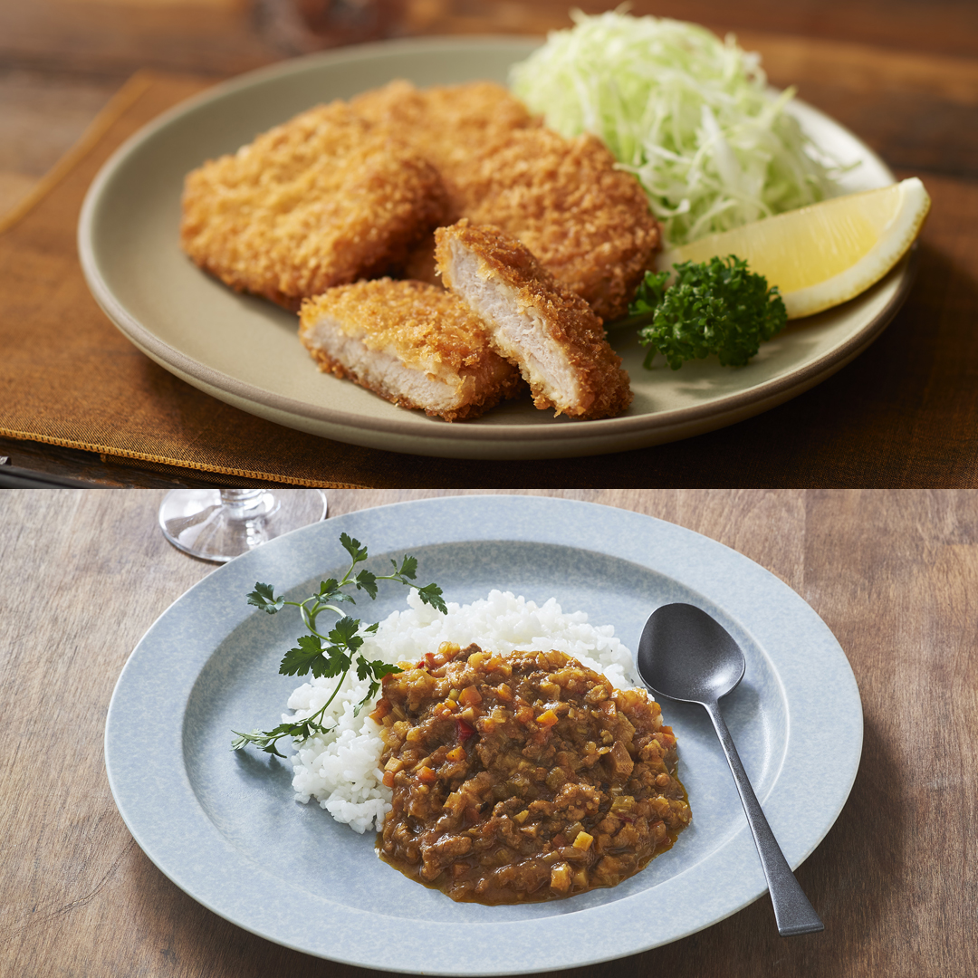 セット内容 | ミニひれカツ 4枚入り×1P / 7種野菜とひき肉のキーマカレー×2P |
