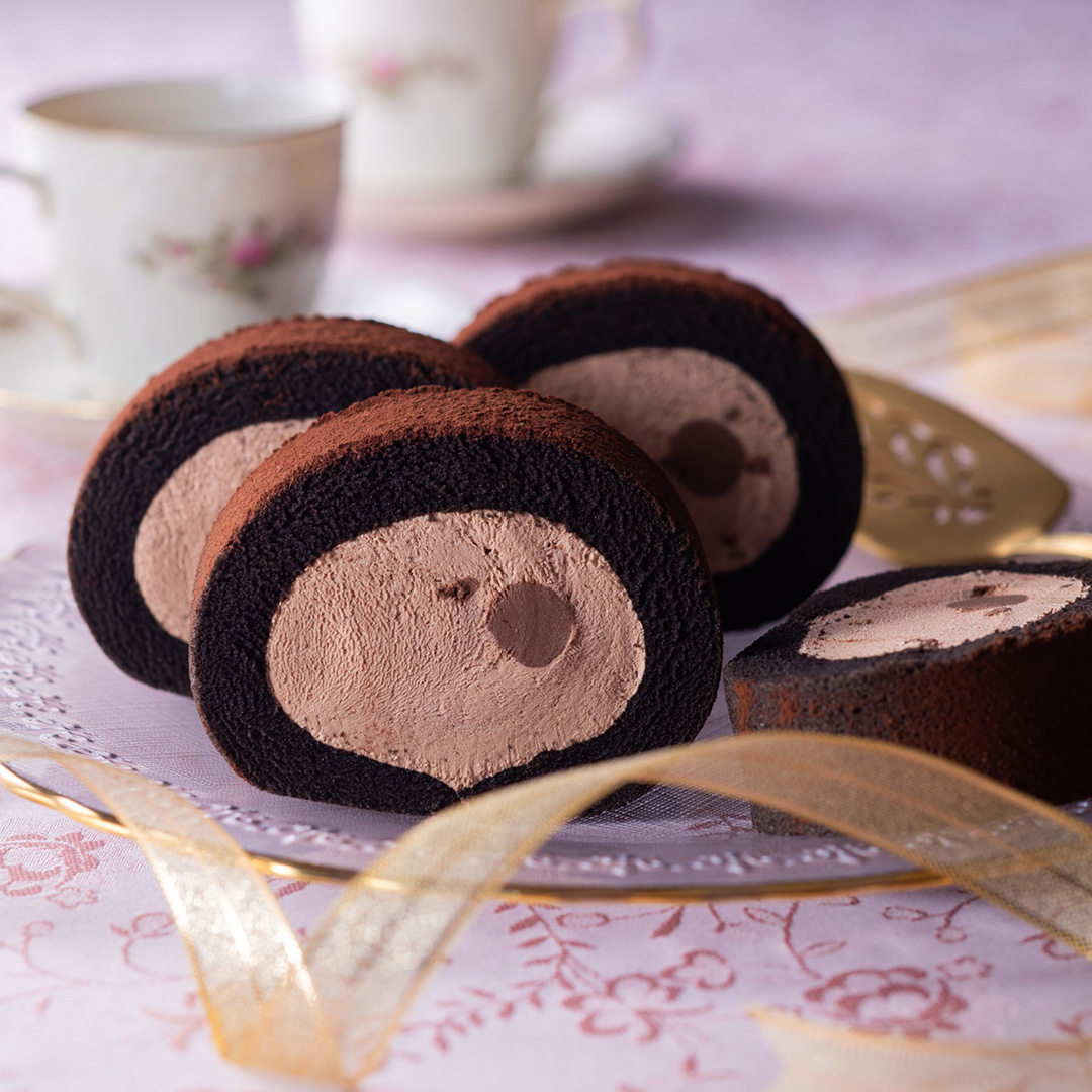 大人の味の生チョコロールケーキと、抹茶の濃厚なクリームとつぶあんの風味がマッチした抹茶とあずきのロールケーキのセットです。