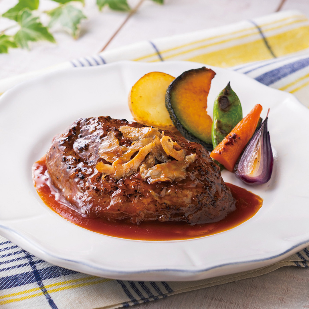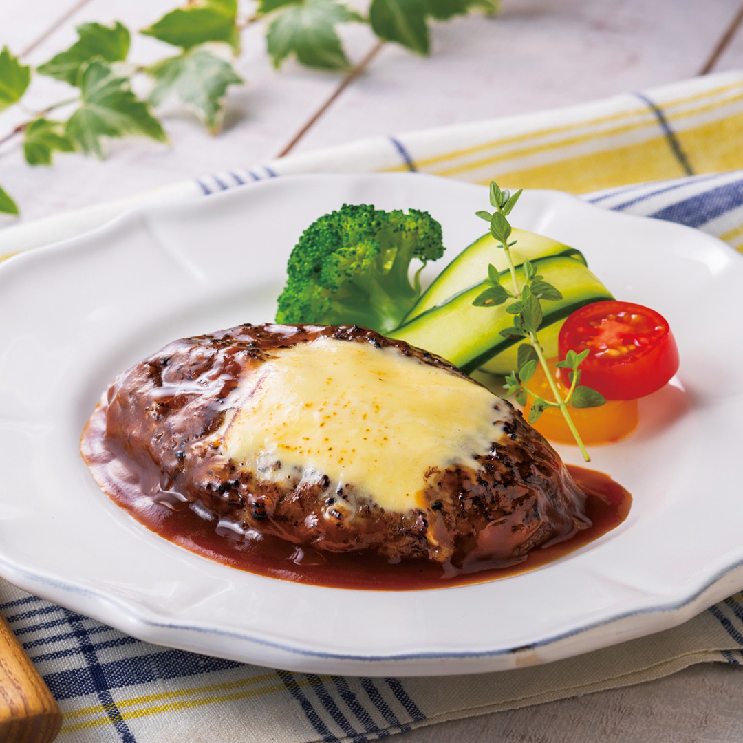 厳選した国産牛豚肉を使用し、ワインと生クリームを隠し味にしたジューシーなハンバーグの味わいをご家庭でお楽しみください。
