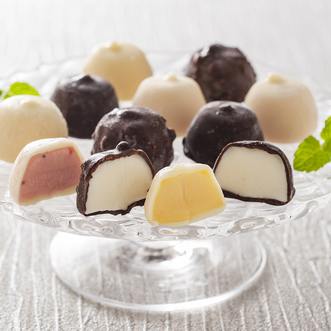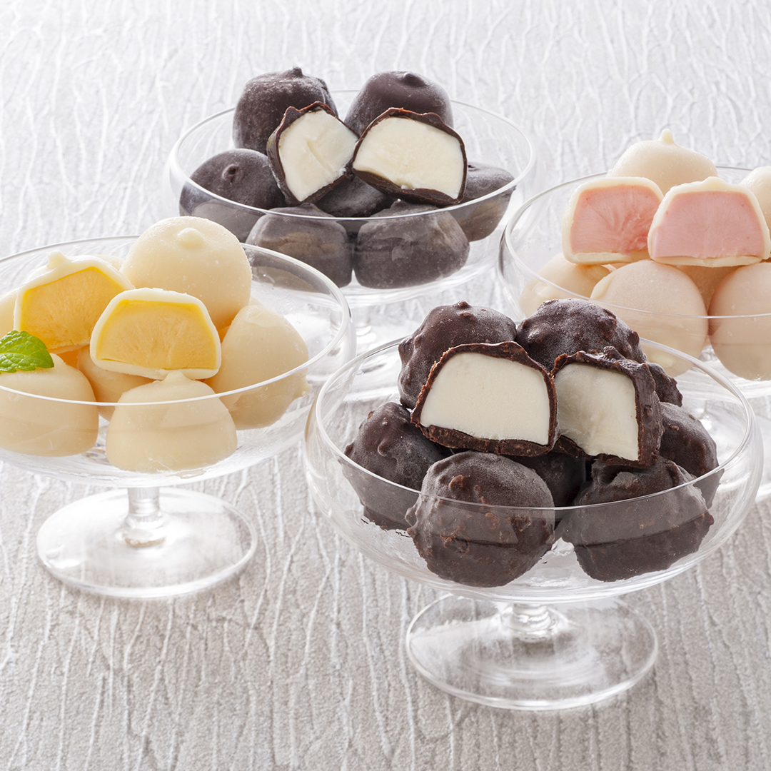 バニラ・クランチ・ストロベリー・マンゴーの4種類が楽しめる、一口サイズのアイスです。