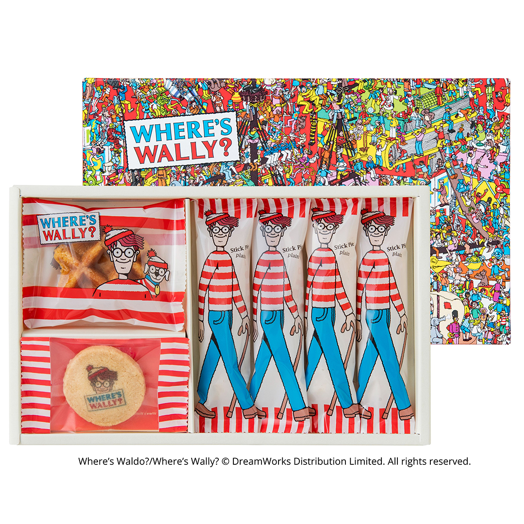 ウォーリーのオリジナルプリントクッキーと食べ応えのあるワッフル、サクッとした食感が楽しいステックパイを詰合せにしたギフトセットです。
