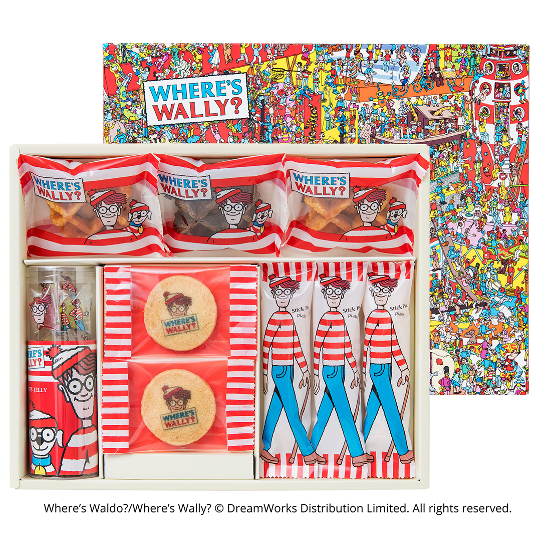 ウォーリーのオリジナルプリントクッキーと食べ応えのあるワッフル、サクッとした食感が楽しいスティックパイを詰合せにしたギフトセットです。