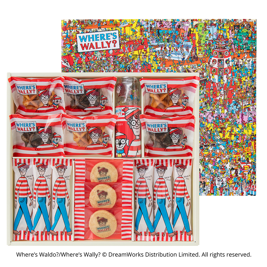 ウォーリーのオリジナルプリントクッキーと食べ応えのあるワッフル、サクッとした食感が楽しいスティックパイを詰合せにしたギフトセットです。