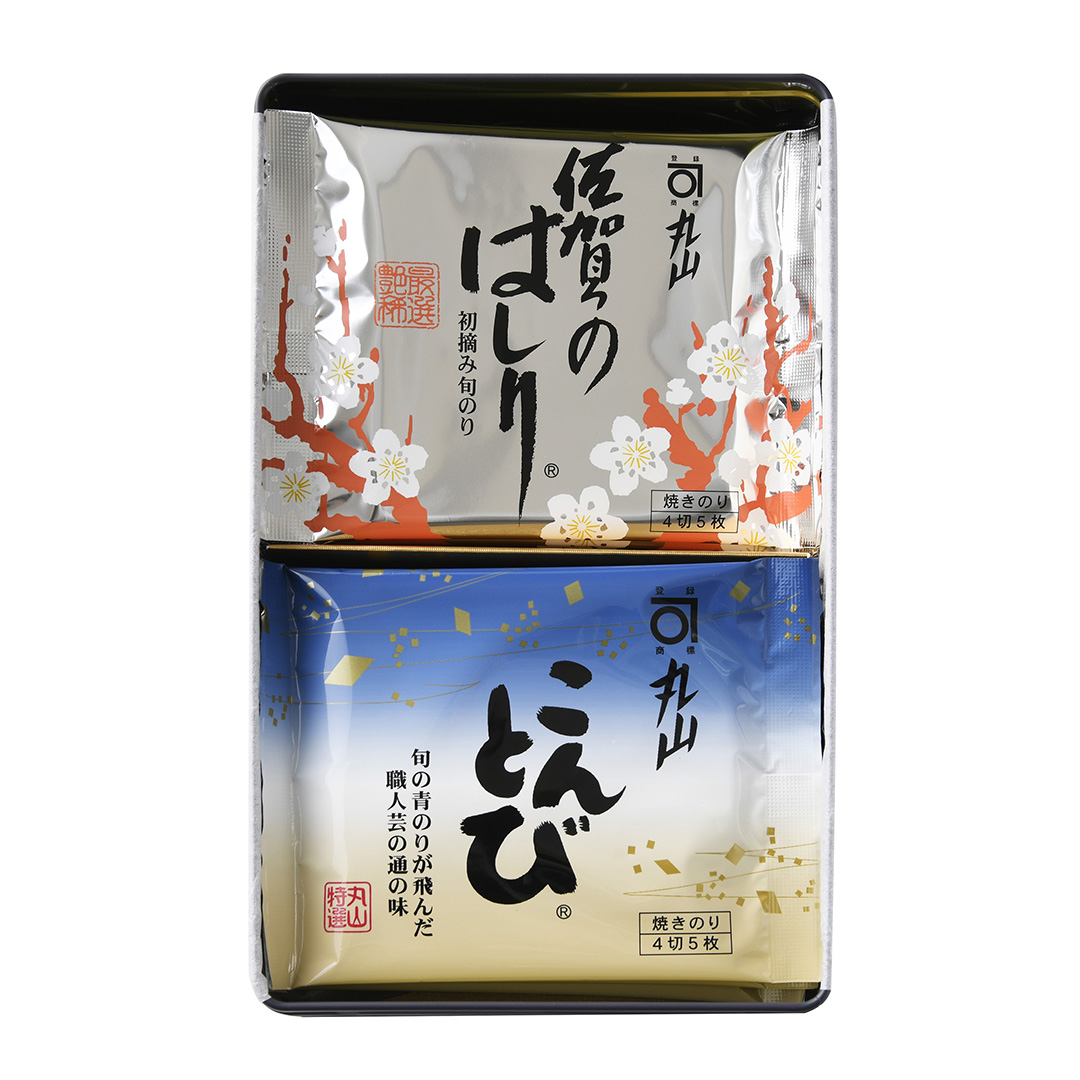 丸山海苔店 極上はしり・こんとび2種詰合せ缶入 (四切5枚×16袋)