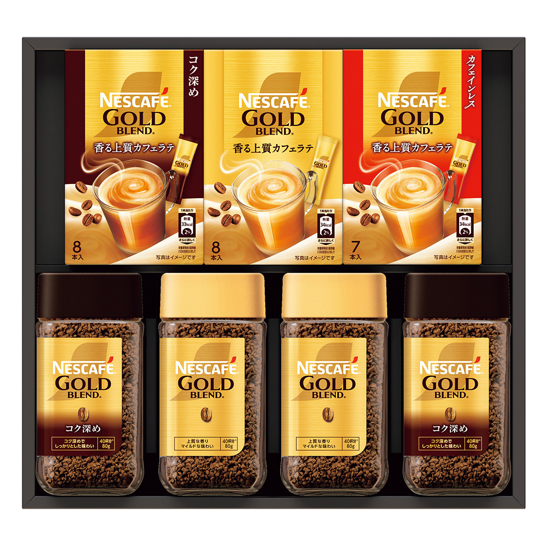 | セット内容 | ●インスタントコーヒー(ゴールドブレンド・ゴールドブレンドコク深め各80g×2)、スティックコーヒー(ゴールドブレンド・ゴールドブレンドコク深め各7g×8P×1・ゴールドブレンドカフェインレス7g×7P×1) |