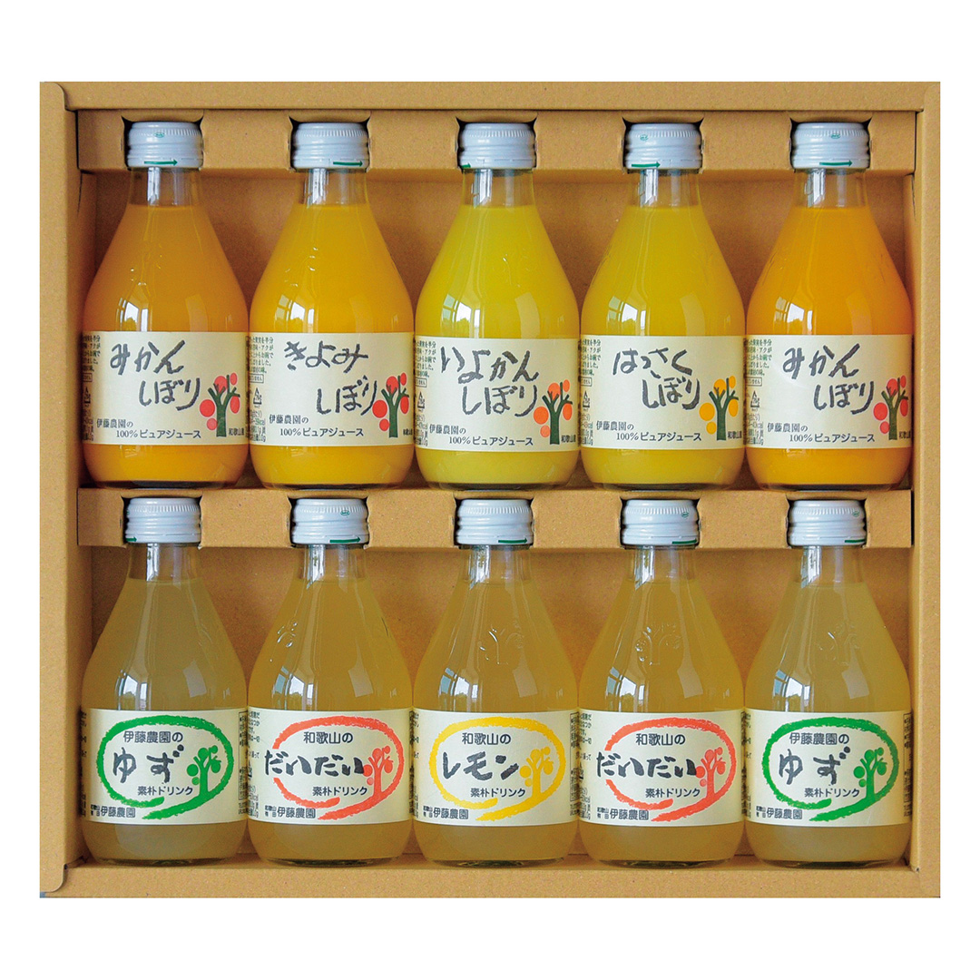 セット内容 | ●果汁100%ピュアジュースみかん180ml×2、きよみ・はっさく・いよかん各180ml×各1、素朴ドリンクゆず・だいだい各180ml×各2、レモン180ml×1 |