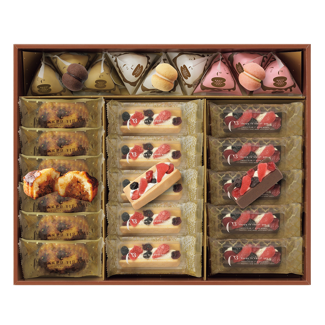 人気の焼きティラミス、華やかな装いのベリーウィッチ、ころんとした形がかわいいサクッチホロッチを詰合せました。
