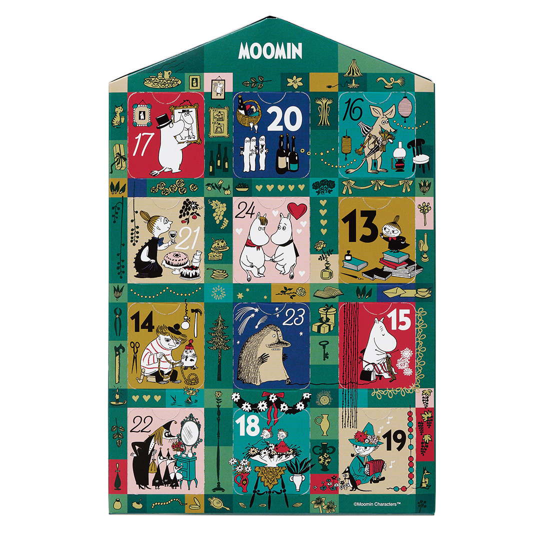 ムーミンハウスのデザインを施したアドベントカレンダームーミンたちの可愛らしいイラストとともにカウントダウンを楽しめます。