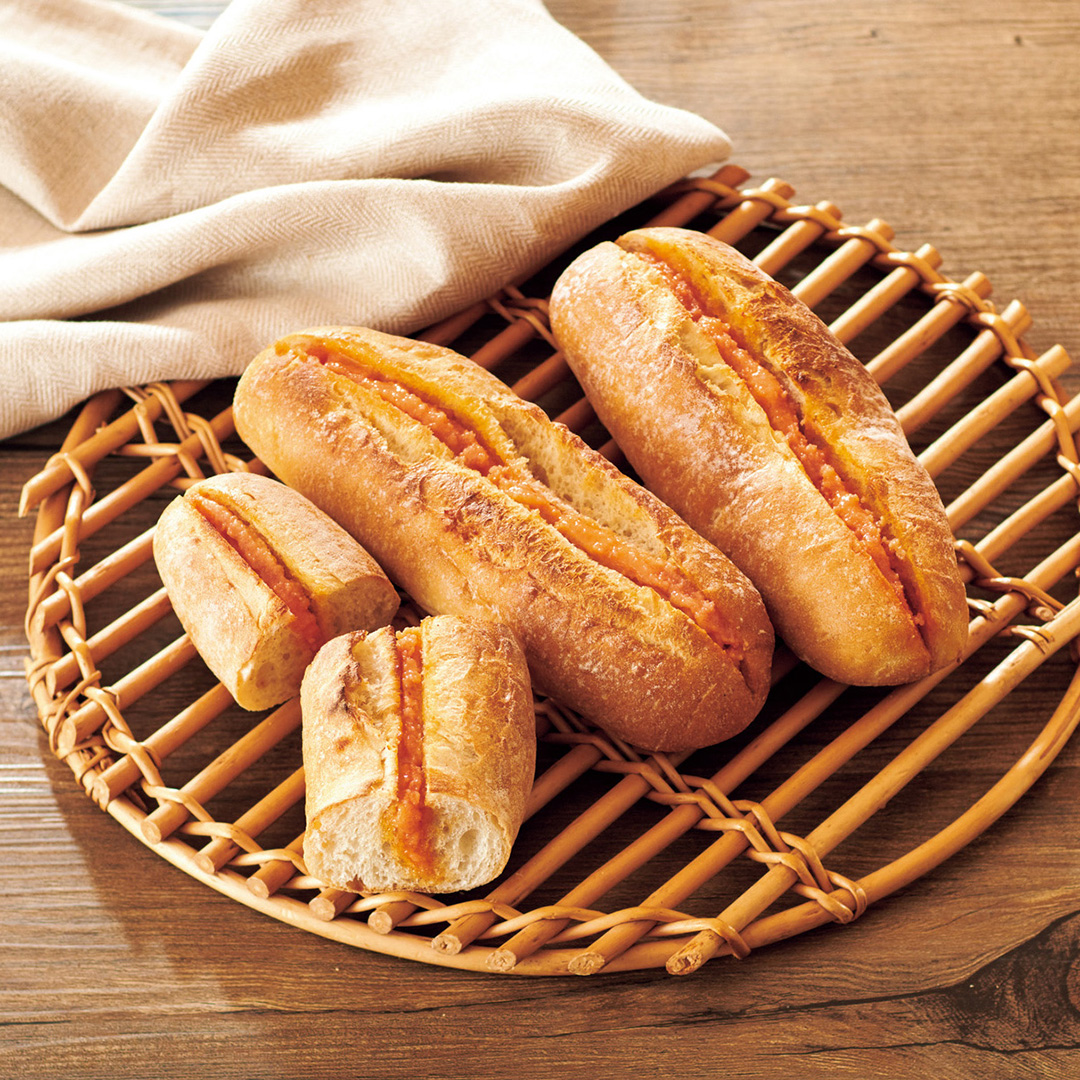 ライ麦と石臼挽きの小麦粉を配合して作ったパンに「やまや」の辛子明太子使用のフィリングをサンド。