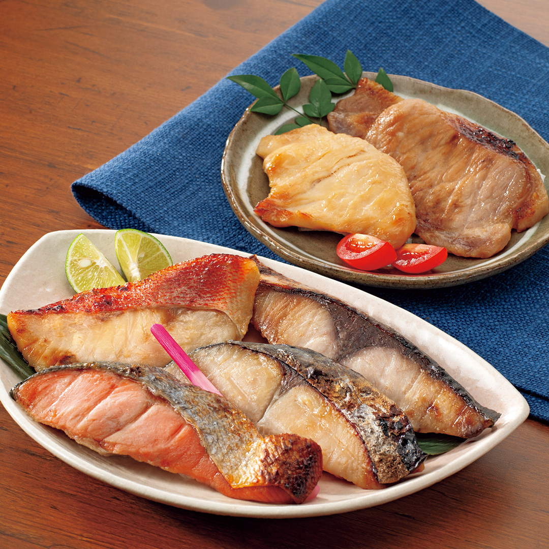 | 内容量 | ぶり・国産豚・国産どり×各2、鮭・さわら・アラスカメヌケ 各60g |