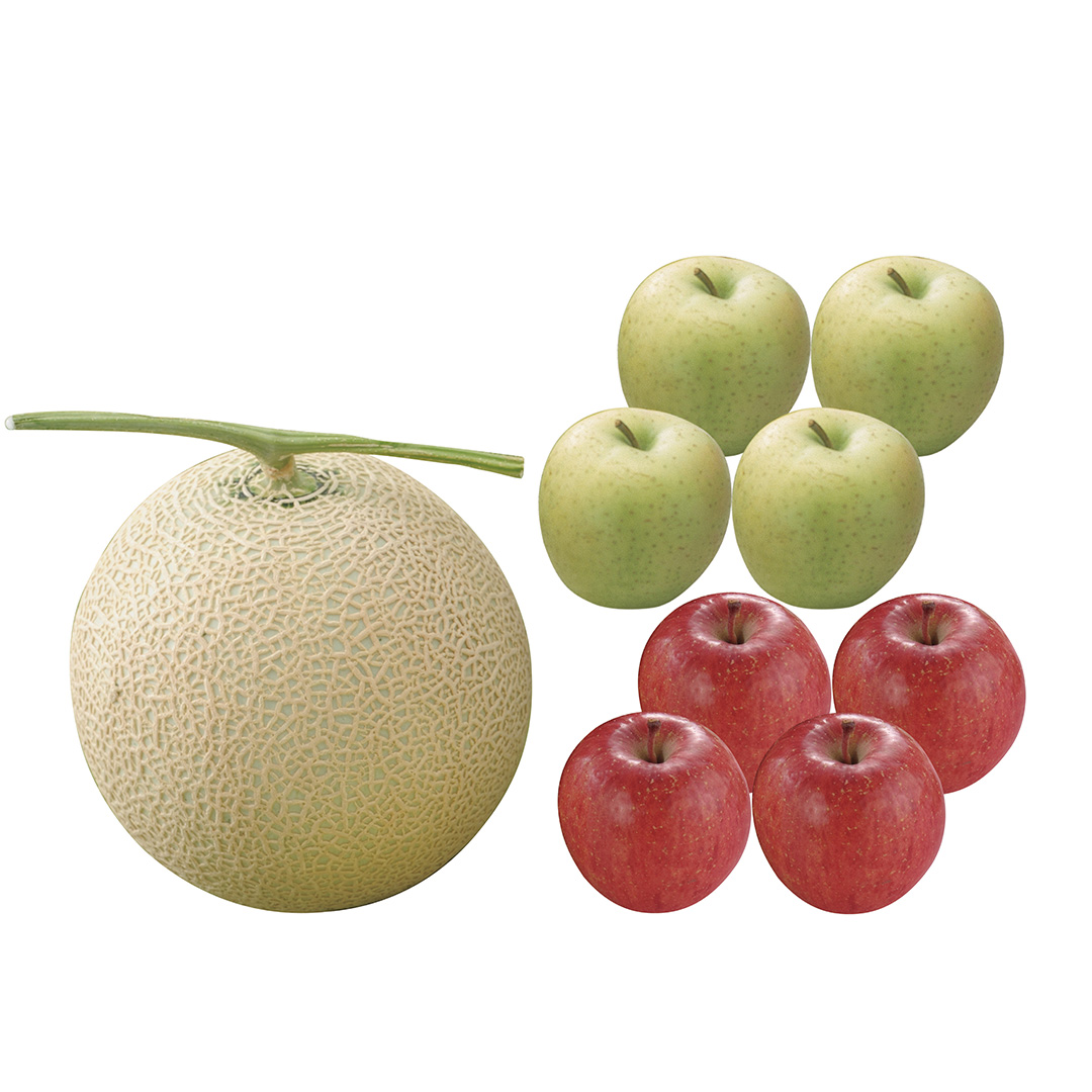 | 原産地 | クラウンメロン(静岡県)、サンふじ・王林(青森県) |