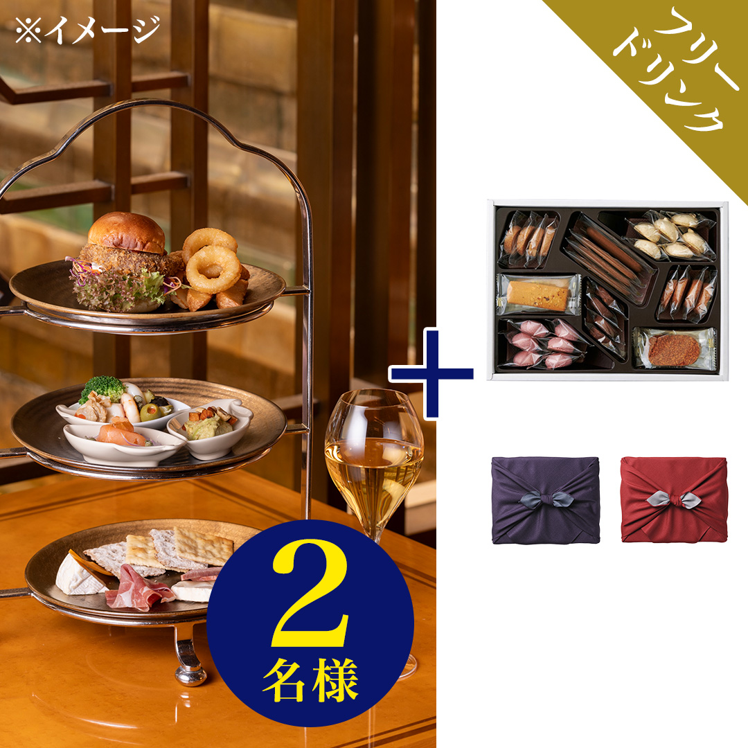帝国ホテル 東京 「ランデブーラウンジ ハイティー券+フリードリンク」+帝国ホテルクッキーセット(C-30BE)【京都・風呂敷包み】