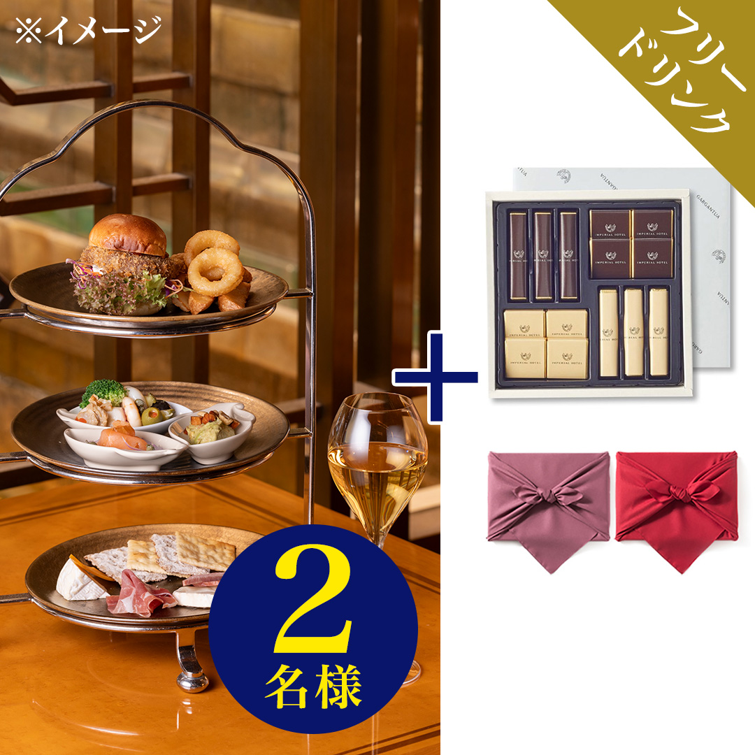 帝国ホテル 東京 「ランデブーラウンジ ハイティー券+フリードリンク」+帝国ホテル チョコレート(TA-20BE)セット【京都・風呂敷包み】