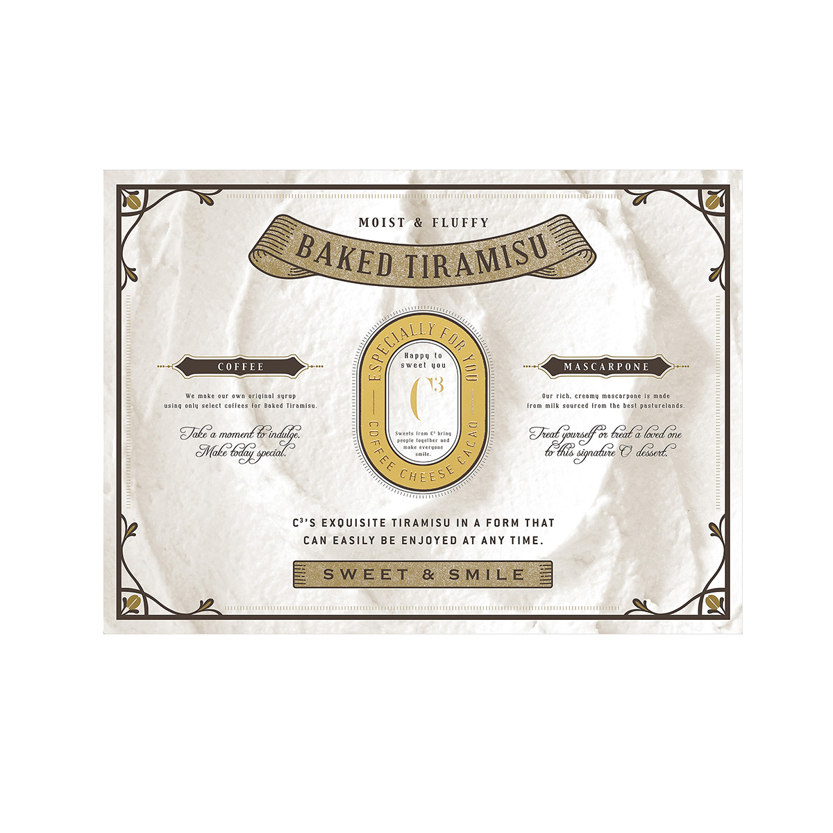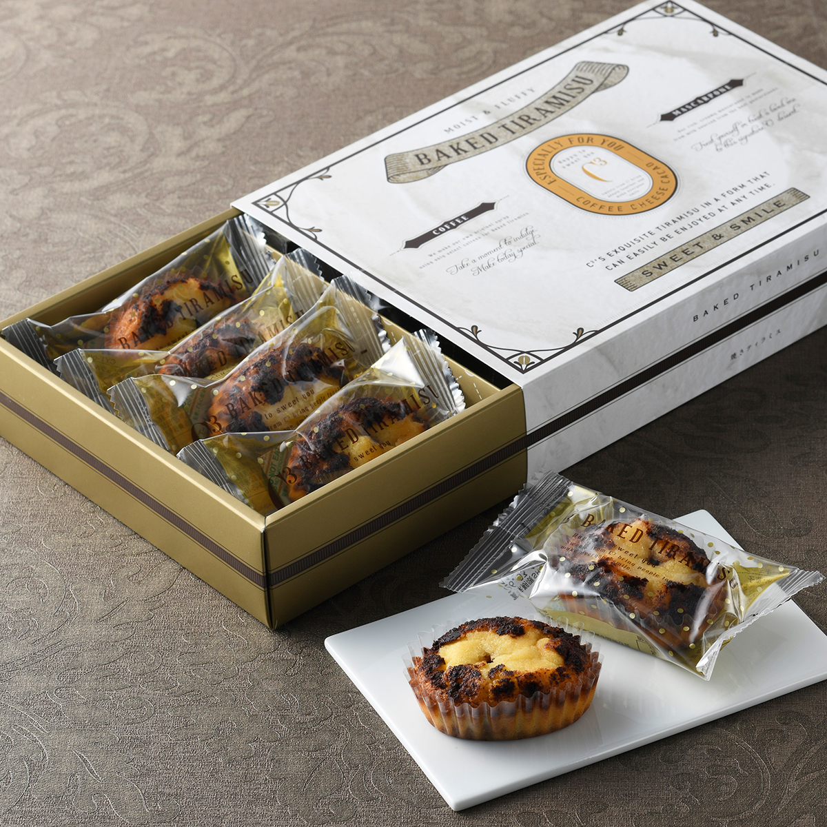 焼き菓子ながらじゅわっとしっとりな新食感スイーツ。こだわりの北海道産マスカルポーネ生地に、ほろ苦いコーヒーシロップを染み込ませました。
