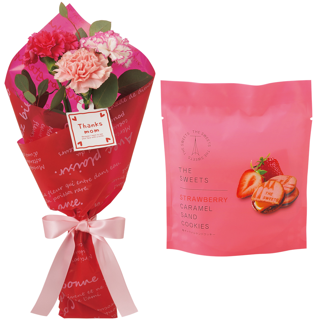 【母の日専用】母の日花束とザ・スウィーツ 苺キャラメルサンドクッキーのセット