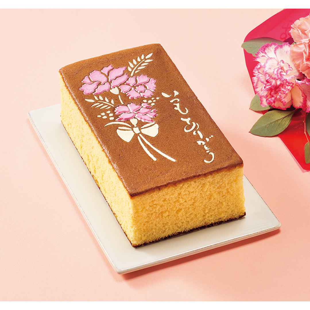 | 商品内容 | ●カーネーション3、レモンリーフ●お手入れのしおり付●母の日カステーラ×1本(縦17.5×横9.5×高さ5┣cm┫) |
