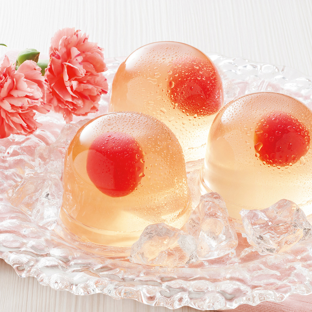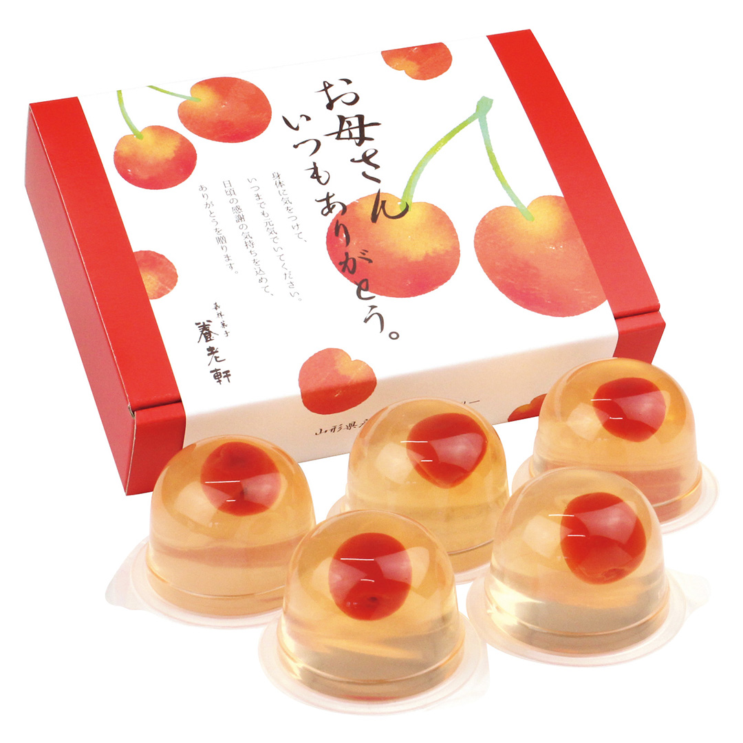 ゼリーは山形県産さくらんぼを使った爽やかで可愛らしい水菓子。