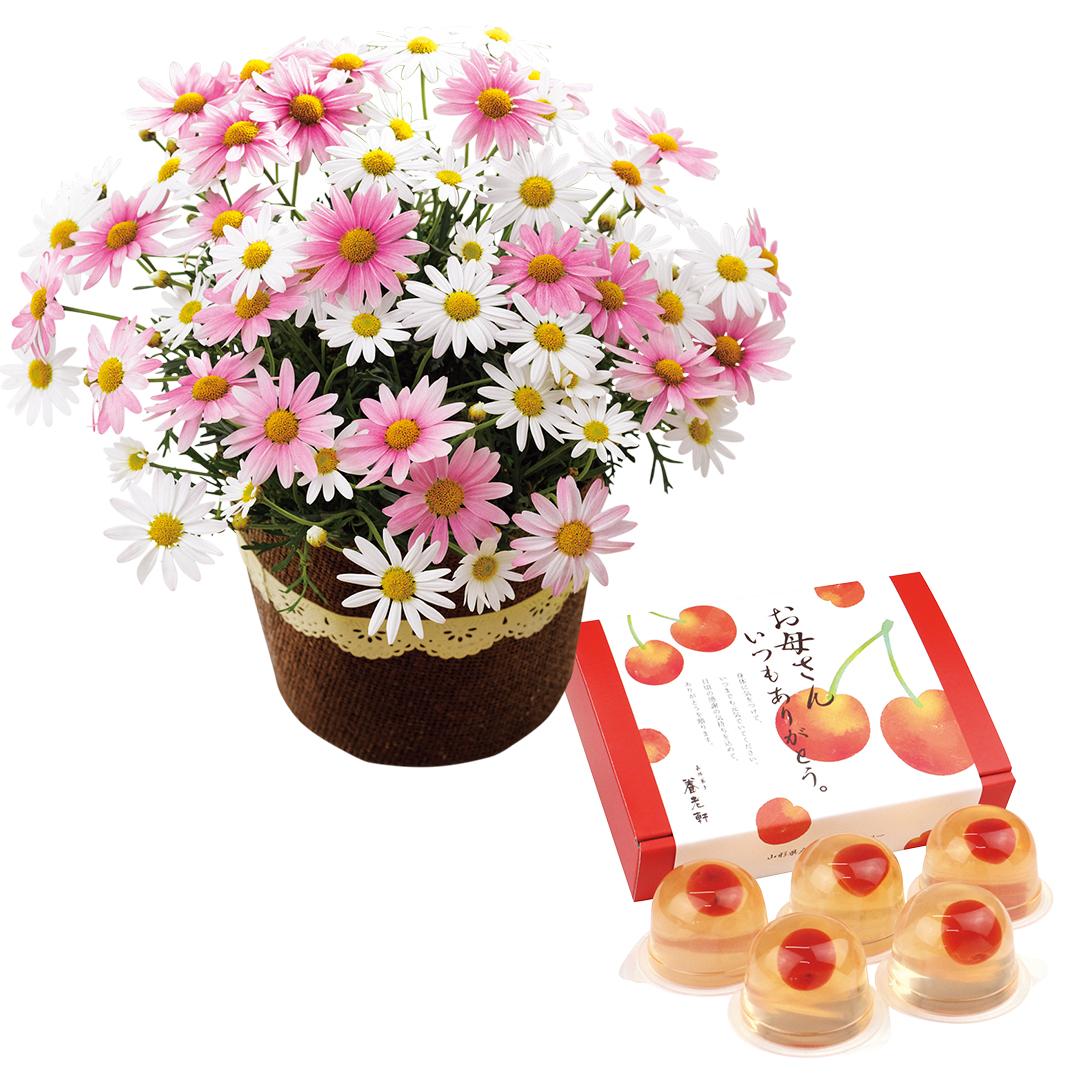 【母の日専用】山形県産さくらんぼのゼリーとマーガレット鉢植え5号のセット