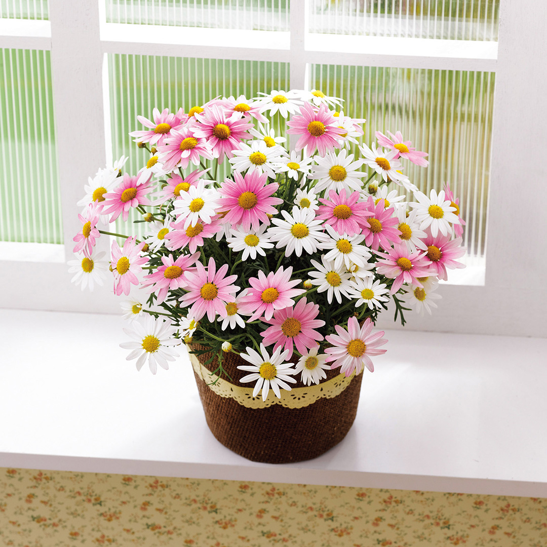 マーガレット鉢植え「さくらべーる」と最中のセットです。