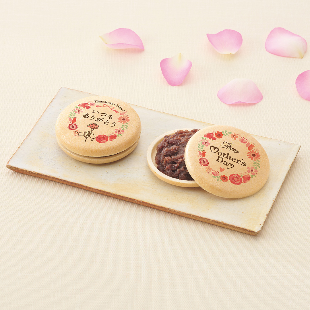 最中は、母の日オリジナルの可愛いデザインを施した香ばしい皮に北海道産の小豆を使用した餡を挟んでお召し上がりください。