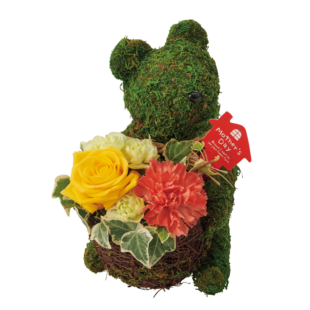 可愛い「クマさん」の形をしたモスに、感謝のお花を添えた愛らしいアレンジメント。