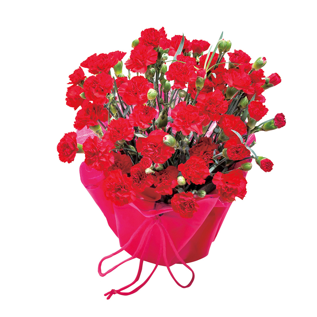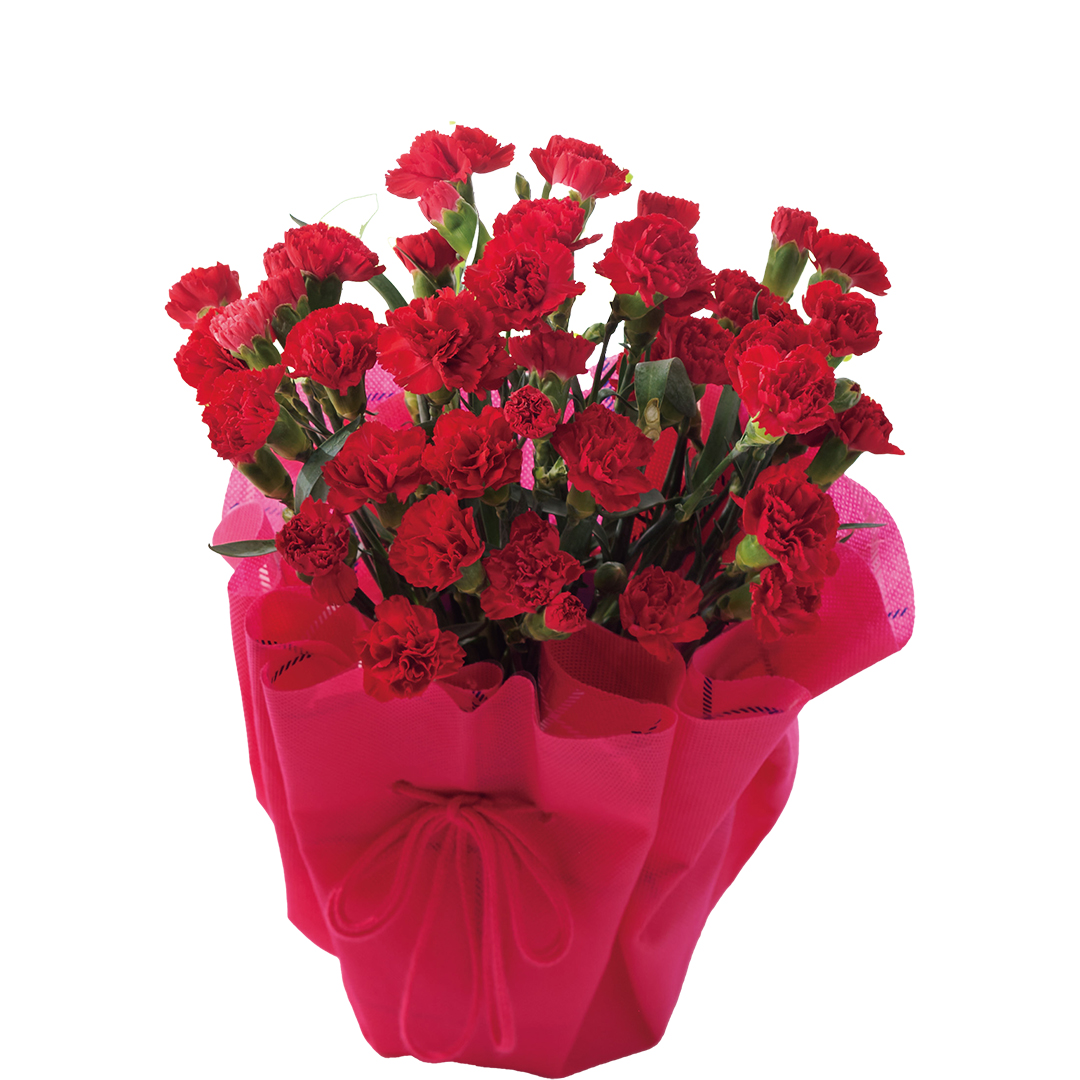 お母さんのそばで長く花を楽しめる、母の日定番の美しい真っ赤なカーネーション鉢植え。