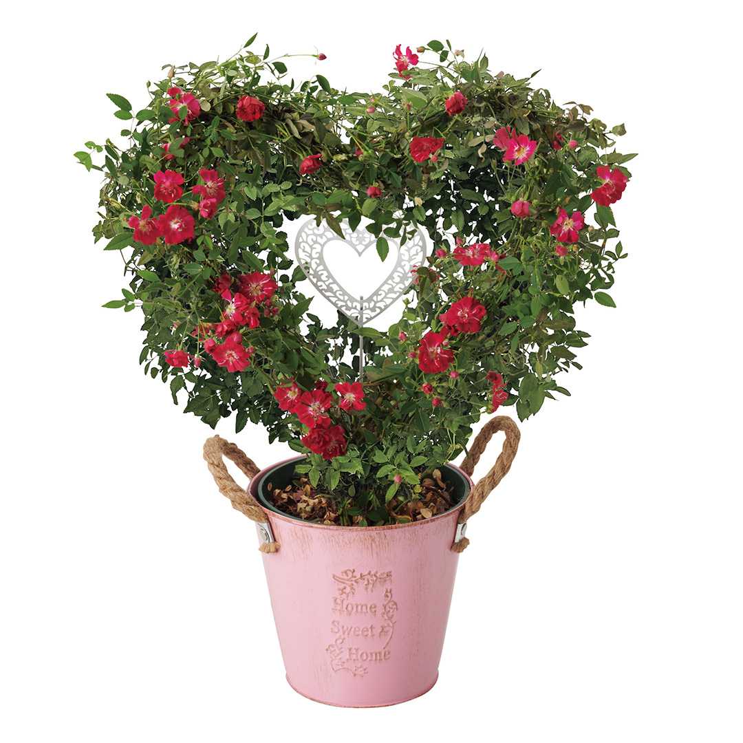 可愛いハートの形に仕立てたつるバラ