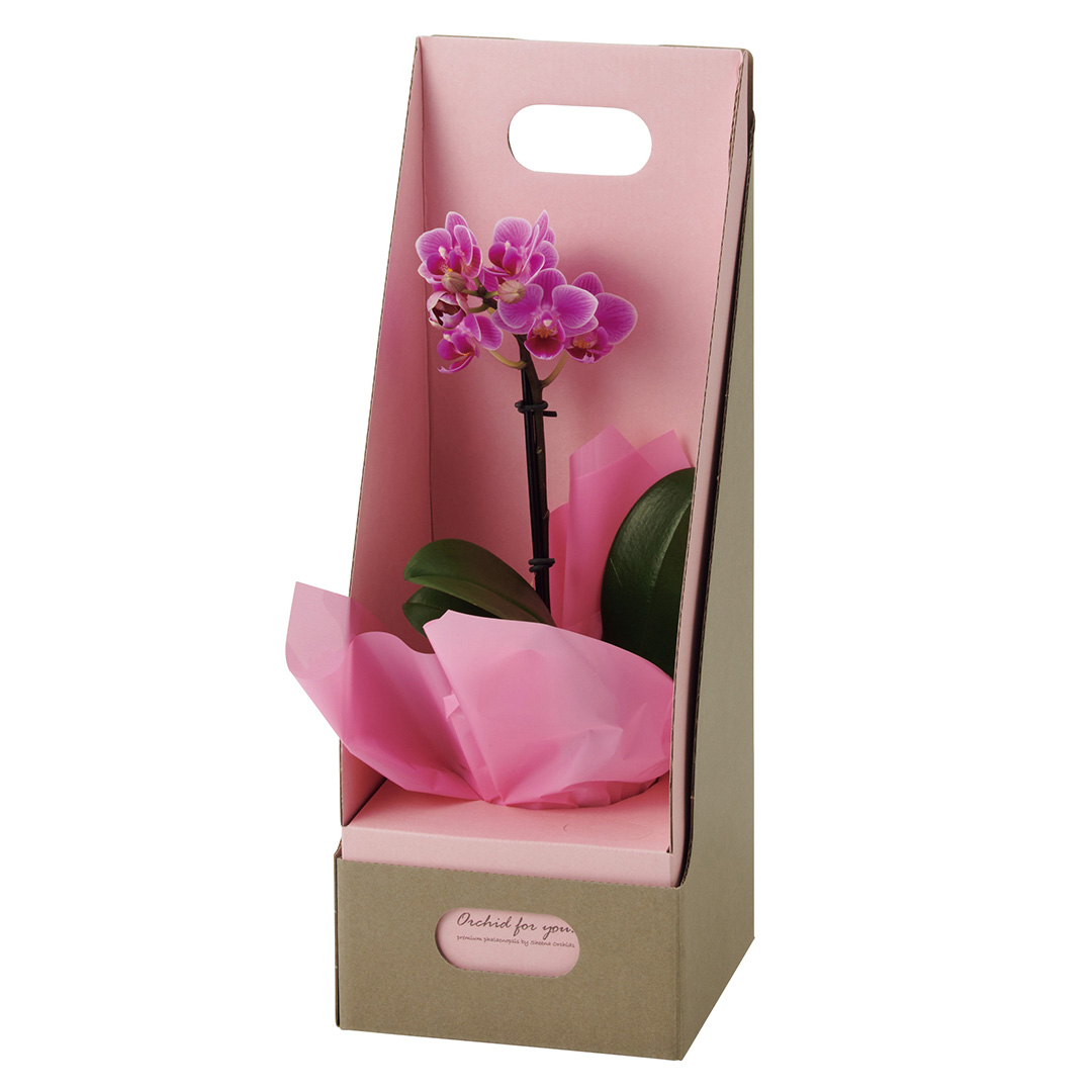 | 商品内容 | ●マイクロ胡蝶蘭1本立ち(2.5号)、ギフトボックス(ギフトボックス色:ピンク)●お手入れのしおり付 |