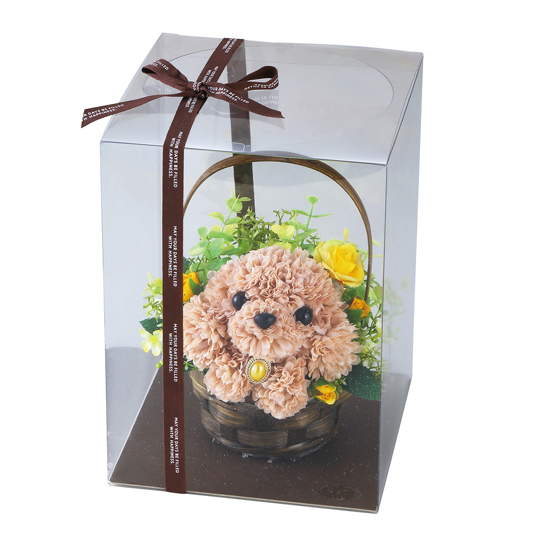 ピンポンマムを贅沢に使用しパピーを表現。ギフトにぴったりのクリアボックス入りです。