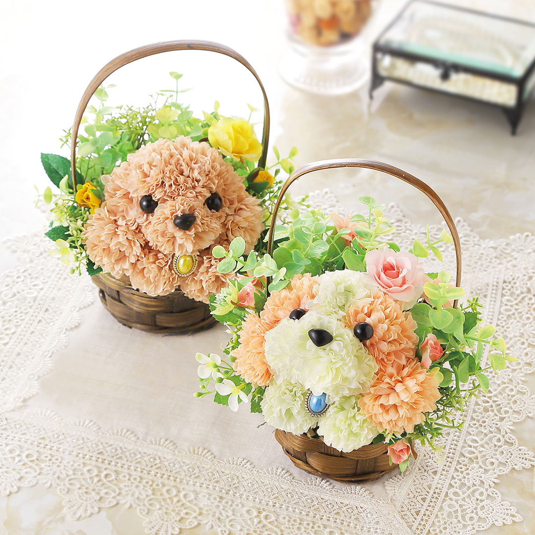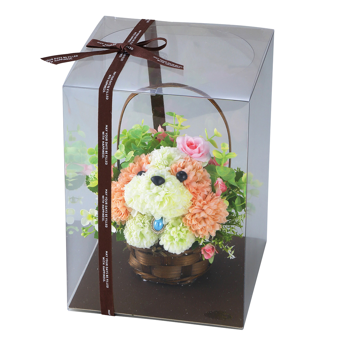 ピンポンマムを贅沢に使用しパピーを表現。ギフトにぴったりのクリアボックス入りです。