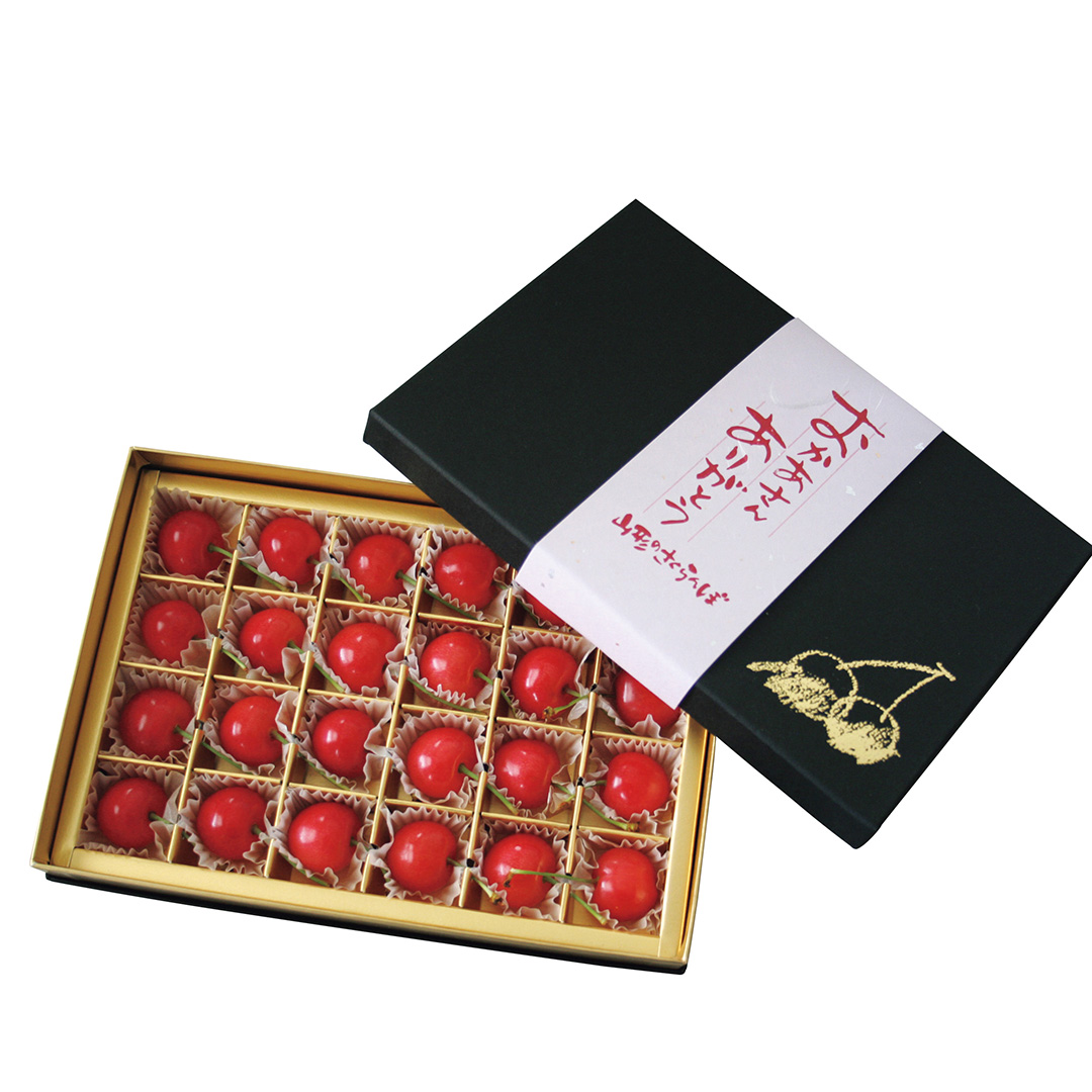 その中でも真っ赤に色づいた佐藤錦を、一粒ずつ可愛らしく並べた宝石箱のような一品です。