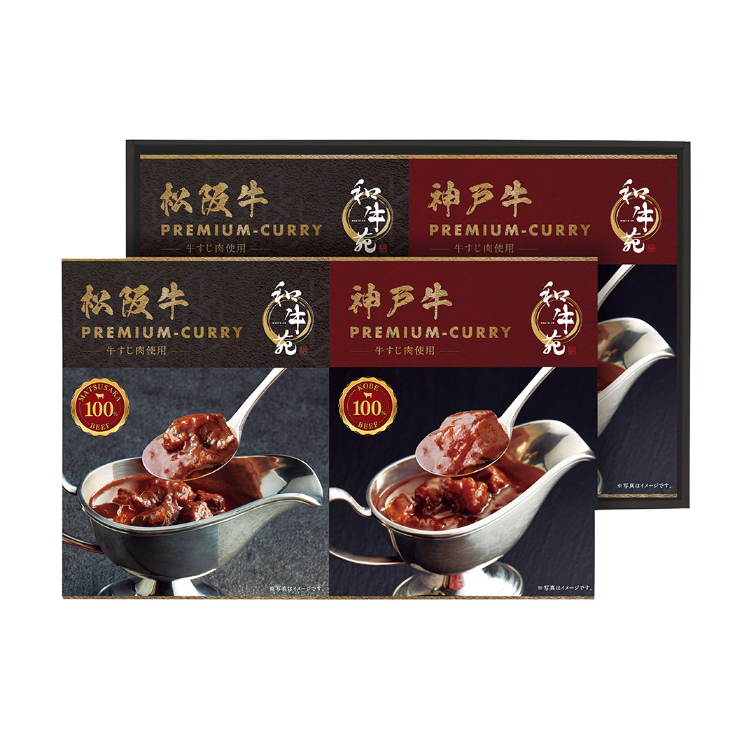 | 商品内容 | ●(レトルト)松阪牛プレミアム牛すじカレー・神戸牛プレミアム牛すじカレー各160┣g┫×各2 (2段重ね) |