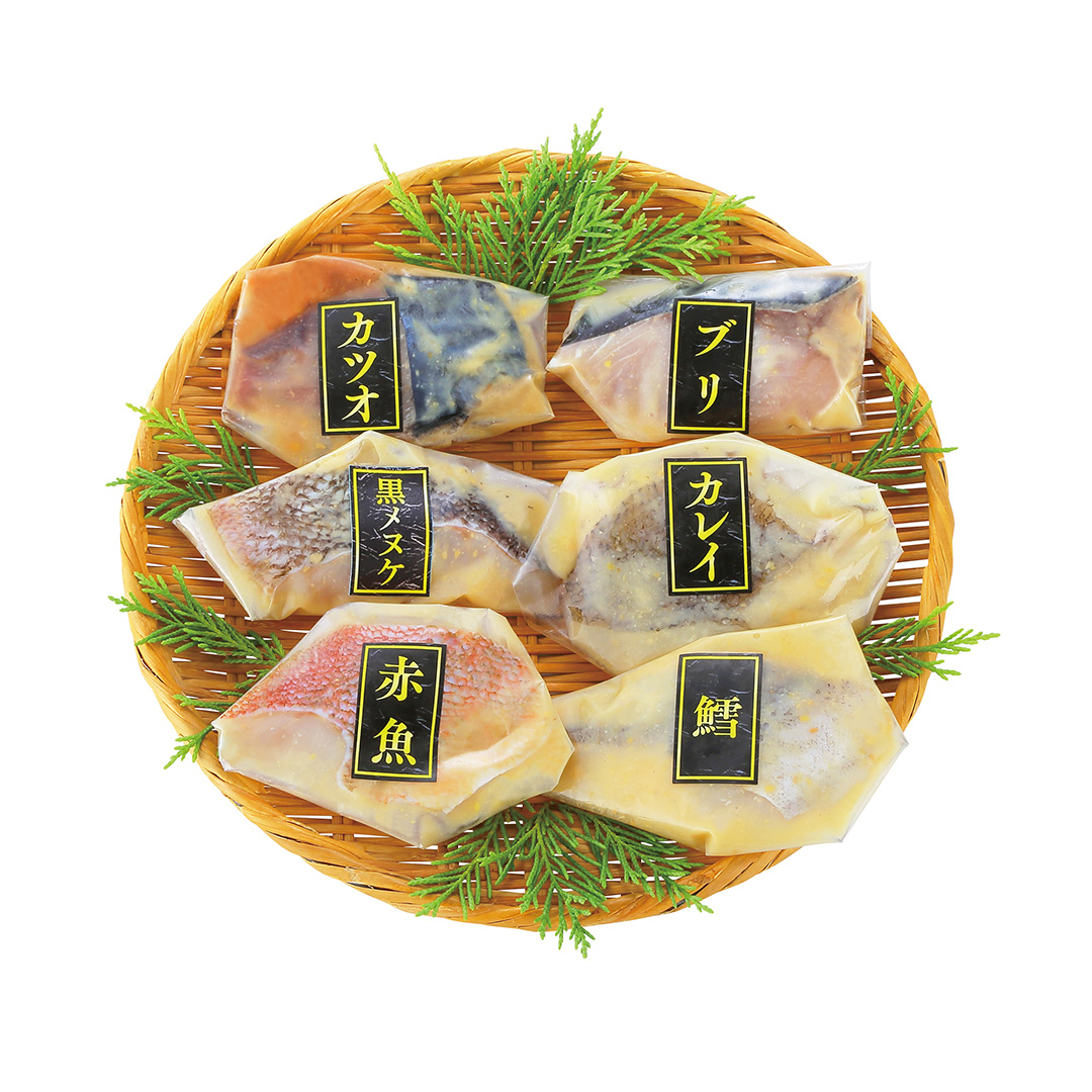 | 商品内容 | ●赤魚・カツオ・ブリ・カレイ・鱈・黒メヌケ各60┣g┫×各1(全て骨取り切り身) |