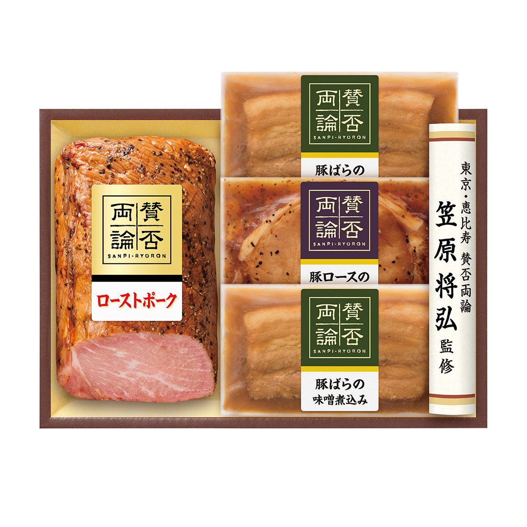 | 商品内容 | ●賛否両論(ローストポーク280┣g┫、豚ロースの醤油煮込み70┣g┫、豚ばらの味噌煮込み70┣g┫×2) |