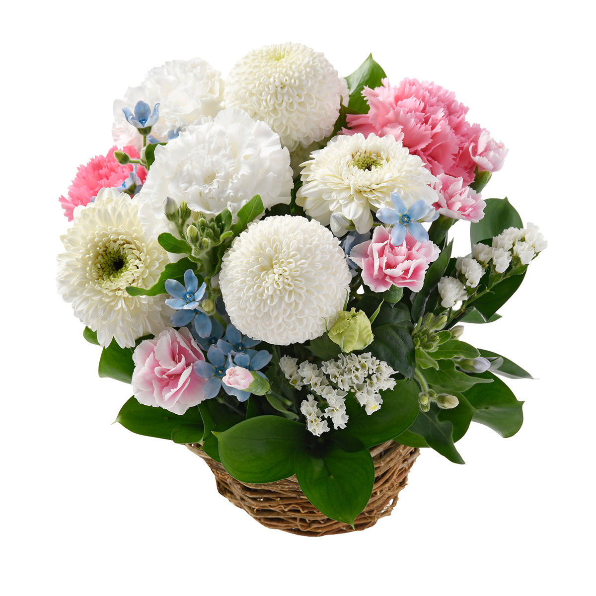 淡く優しいパステルカラーのお花を集めた、心安らぐSサイズのアレンジメントです。