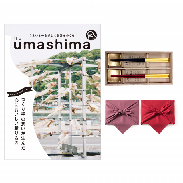 umashima (うましま) グルメ カタログギフトと、箸二膳をセットにしました。
