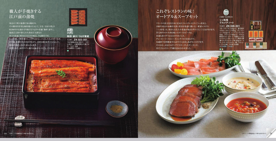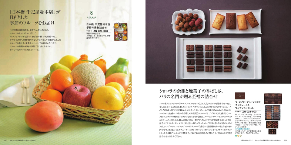 とっておきのシャンパンやワイン、スウィーツやフルーツなど・・・。和食からもセレクトされたグルメ商品は、見ているだけでごちそうに。