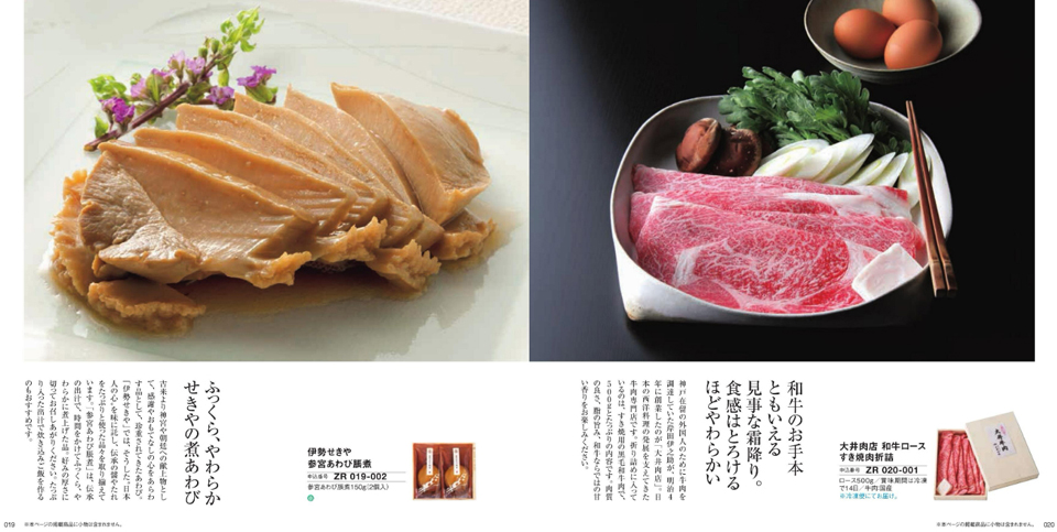 とっておきのシャンパンやワイン、スウィーツやフルーツなど・・・。和食からもセレクトされたグルメ商品は、見ているだけでごちそうに。