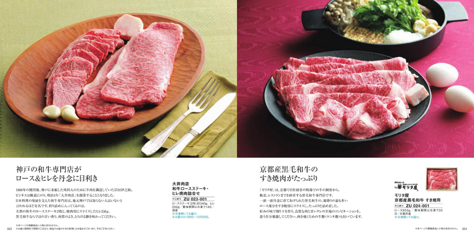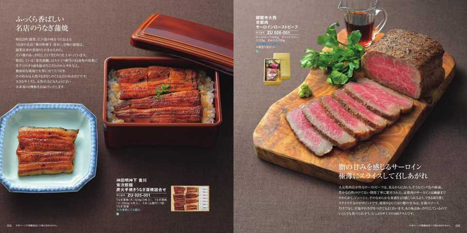 とっておきのシャンパンやワイン、スウィーツやフルーツなど・・・。和食からもセレクトされたグルメ商品は、見ているだけでごちそうに。