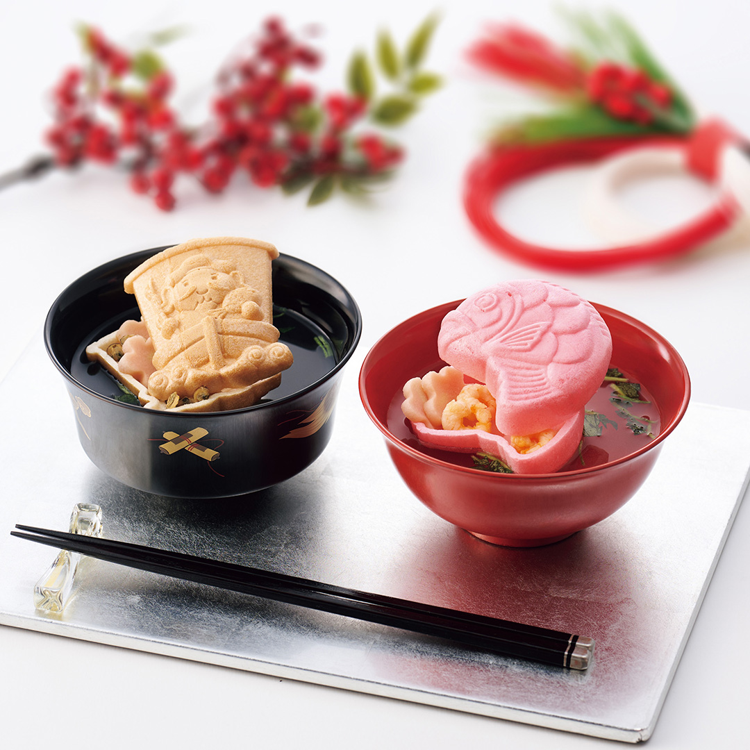 お歳暮限定で、鯛と恵比寿様と亀をモチーフにした、縁起のよいおめでたい最中です。