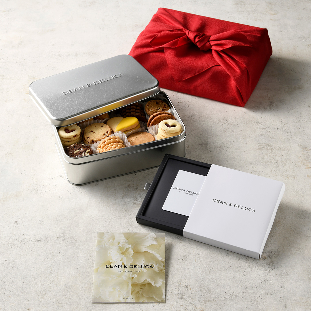 DEAN & DELUCA(ディーン&デルーカ) ギフトカタログ PLATINUM(プラチナ) +アメリカンクッキー缶【風呂敷包み】※カードタイプ