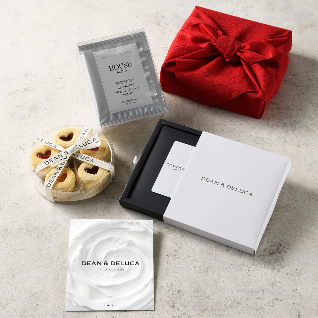 DEAN & DELUCA(ディーン&デルーカ) ギフトカタログ WHITE(ホワイト)+ハートジャムクッキーとコーヒーギフト【風呂敷包み】※カードタイプ